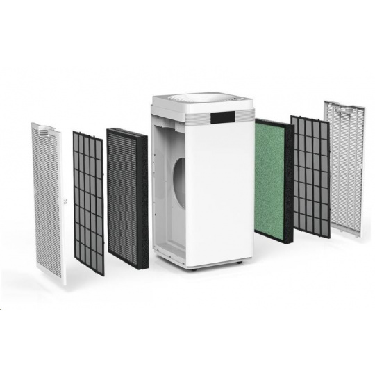 • 2x 4 stupňová filtrace včetně ™?HEPA filtrace a filtrační vrstvy studeného katalyzátoru, který účinně rozkládá organické sloučeniny a toxické látky, stejně jako UV lampa.