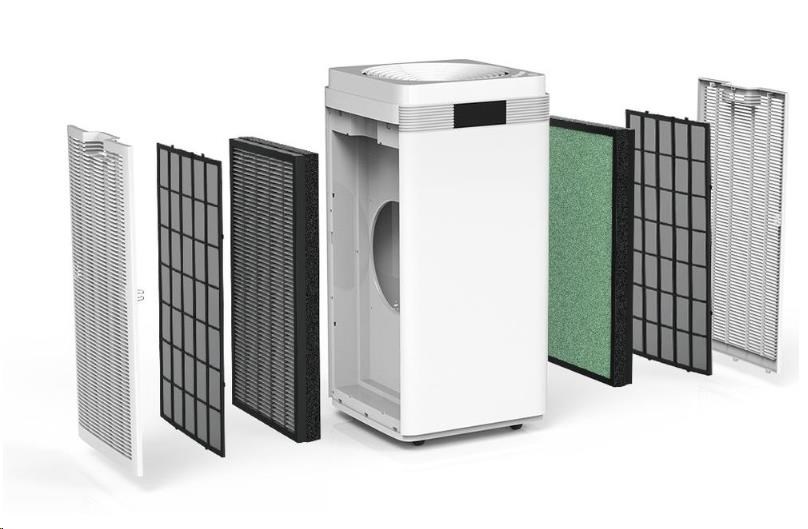 • 2x 4 stupňová filtrace včetně ™?HEPA filtrace a filtrační vrstvy studeného katalyzátoru, který účinně rozkládá organické sloučeniny a toxické látky, stejně jako UV lampa.