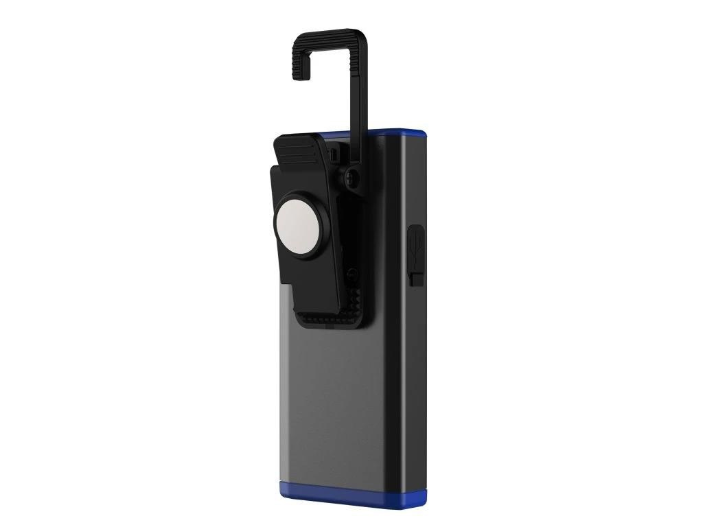 - Praktické možnosti uchycení: Na vrchu baterky se nachází hák na klipu, který je vybaven magnetem, takže ji snadno zavěsíte. Na spodní straně je další magnet pro připevnění k jakémukoli kovovému povrchu.