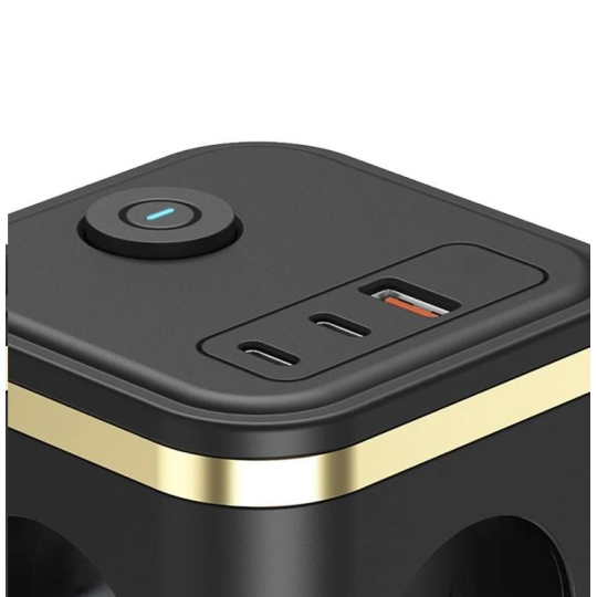 Viking síťový adaptér Y33, 3x 230 V, 1x USB-A, 2x USB-C, tlačítko ON/OFF, černá