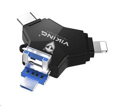 Viking USB Flash disk 3.0 4v1 s koncovkou Lightning/Micro USB/USB/USB-C, 128 GB, černá