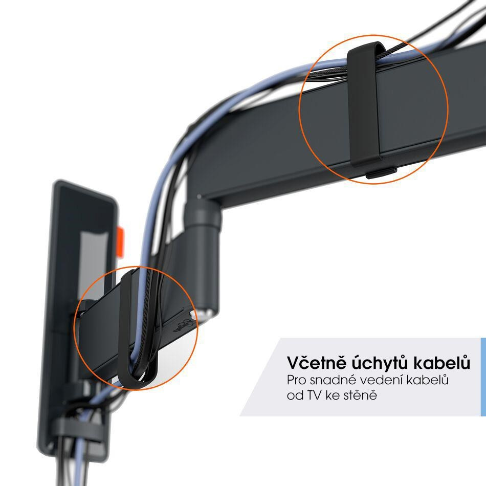 • Součástí balení jsou klipy na uchycení kabelů - ideální vedení kabelů od televizoru ke stěně