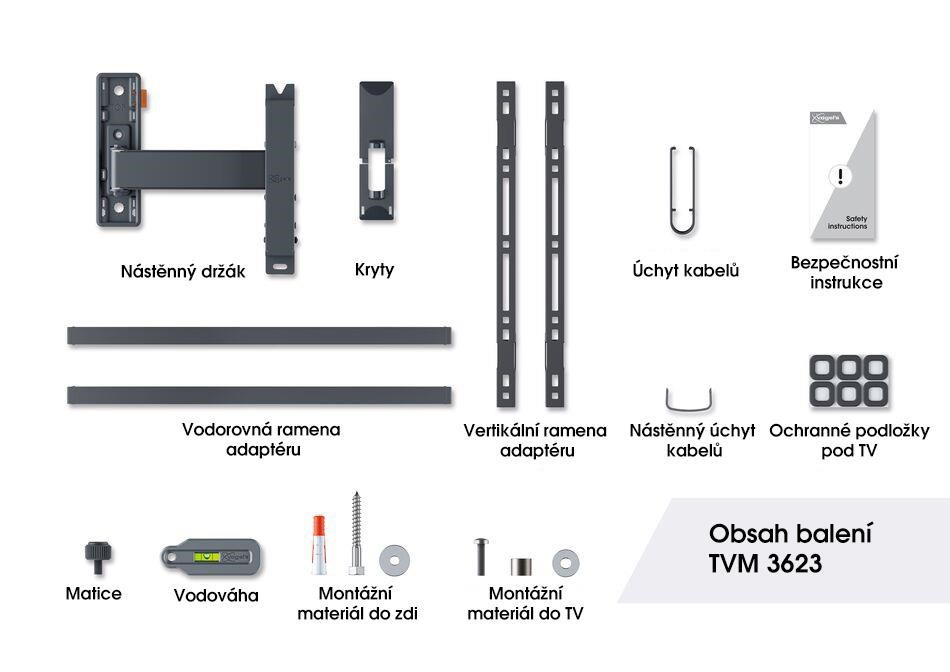 Rameno TVM 3623 se vyznačuje plynulým ovládáním. Pomocí funkce One-Finger™ Movement můžete TV přesunout do jakékoli požadované polohy pouhým jedním prstem. Díky speciálním ložiskům se nástěnný držák pohybuje velmi hladce a lehce. Držák je vybaven jedinečným systémem TiltAnchor™. Tento systém zajišťuje bezpečné naklápění a fixaci polohy vašeho cenného televizoru.