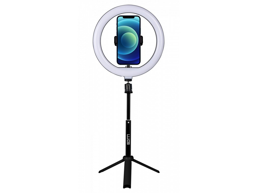 Balení obsahuje: držák na telefon, tripod a LED světlo.