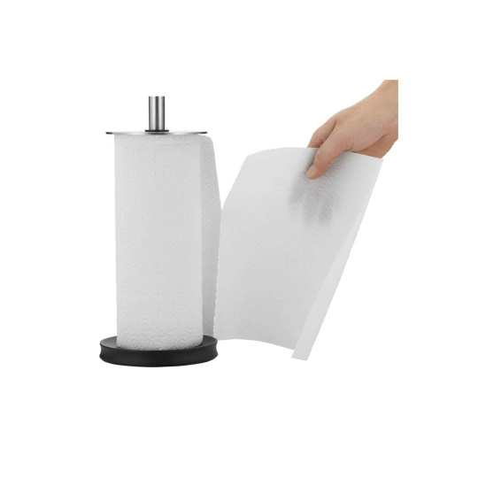 - Stabilní základna: Široká a zatížená spodní část zajišťuje, že držák pevně stojí na pracovní desce i při odtrhávání utěrek jednou rukou.