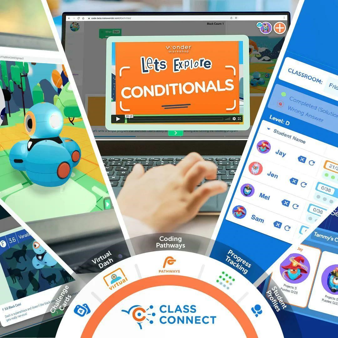 Wonder Pack obsahuje veškerý hardware a software, který potřebujete k tomu, abyste dětem ve třídách zpřístupnili programování! Toto balení obsahuje Sketch Kit, který z robota Dashe udělá kreslící nástroj. Součástí je také Launcher, Gripper Building Kit a dvojice LEGO konektorů – ideální způsob, jak získat kompletní sadu příslušenství! Součástí tohoto balení je také roční licence na Class Connect pro 2 studenty. Díky platformě Class Connect mají žáci k dispozici rozsáhlou zásobu lekcí, aktivit a hádanek, které mohou plnit v aplikaci Blockly a naučit se tak důležité dovednosti v oblasti programování a aplikovat je na reálné příběhové výzvy. Obsah balení: Dash robot Sketch Kit Launcher Gripper Building Kit Building Brick Connectors.