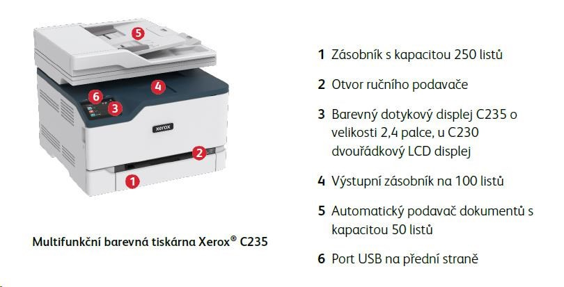- Barevná multifunkční tiskárna Xerox® C235