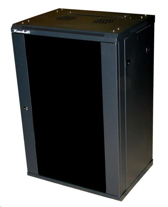 XtendLan 19" nástěnný rozvaděč 18U 600x450, nosnost 60 kg, skleněné kouřové dveře, svařovaný, černý