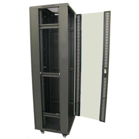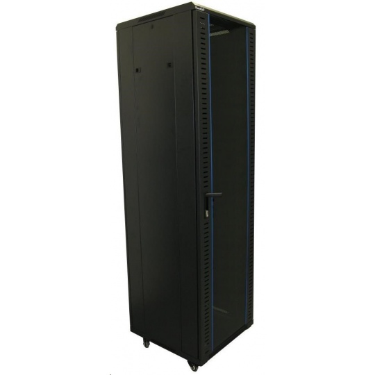 XtendLan 19" stojanový rozvaděč 42U 600x800, nosnost 800kg, skleněné dveře, plná záda, kolečka,černý