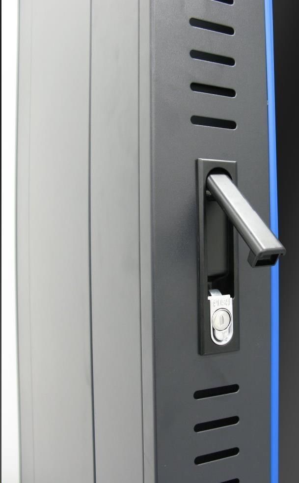 Rozvaděče jsou výborně řemeslně zpracovány. Vyrobeny jsou z válcované oceli, nosné části jsou z oceli tloušťky 2 mm, ostatní části z 1,5 mm oceli. Pevná konstrukce dovoluje statickou zátěž až 5800 kg. Uzamykatelné přední a zadní dveře, rukou uzavíratelné a volitelně uzamykatelné boční panely. Dodává se s nožičkami, kolečky a montážní sadou. Je možné přidat podstavec. Kolečka i nožičky lze nainstalovat současně a zajistit tak stabilní instalaci, kterou je možné v případě potřeby snadno přesouvat. Provedení: dveře - bezpečnostní sklo, uzamykatelné zádní kryt - plný, uzamykatelný boční kryt - plný, možno vybavit zámkem